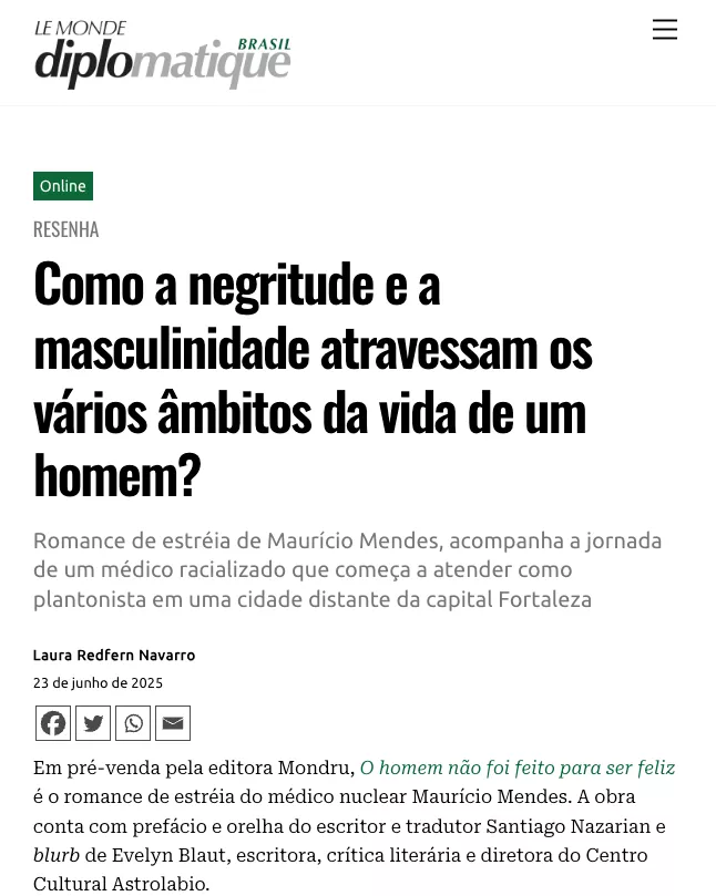 Teve seu livro "Meio norte 2B84" publicado pela Editora Oito e Meio (selo Transversal).