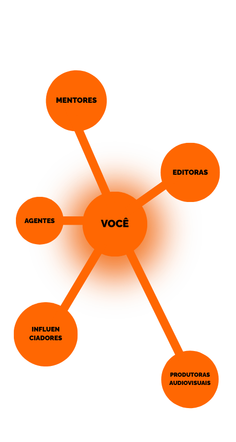 Como mentorando, todos os meses você participará de uma imersão de networking com algum profissional do mercado editorial: editores, agentes, influenciadores, produtores audiovisuais, escritores estarão conosco para conhecer você e o seu trabalho.